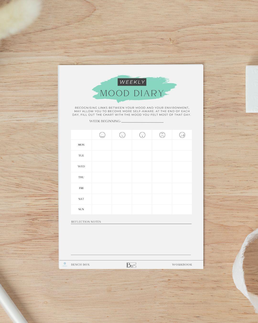 DownloadUse this to keep track of your mood throughout the week. This will help to identify any potential patterns and allow you to check in with youself.